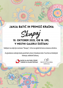 Odprtje razstave bo v petek, 10. oktobra, ob 18. uri v Mestni galeriji Šoštanj. Na odprtju bomo prisluhnili učencem Glasbene šole Fran Korun Koželjski, oddelek Šoštanj. Vabljeni!